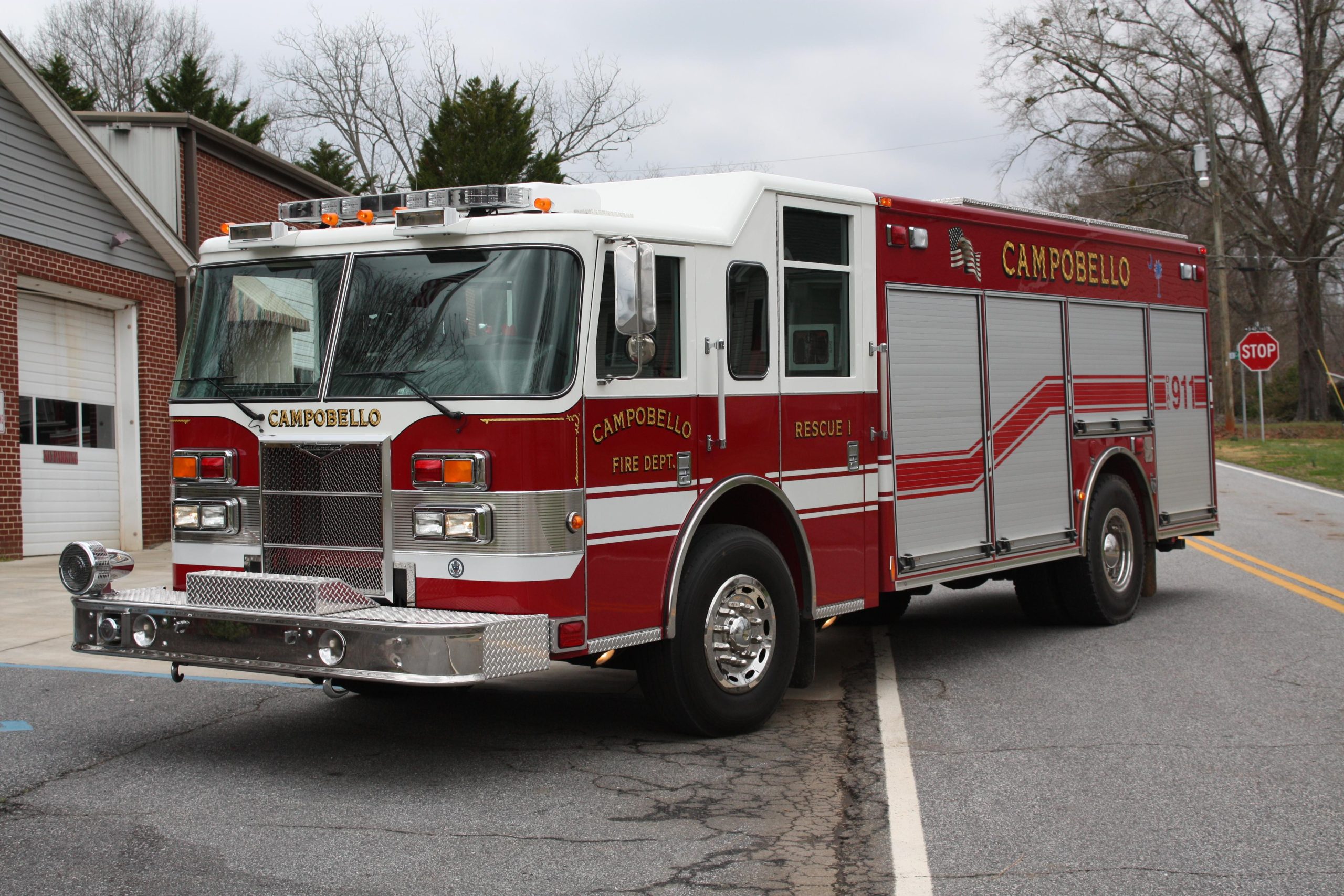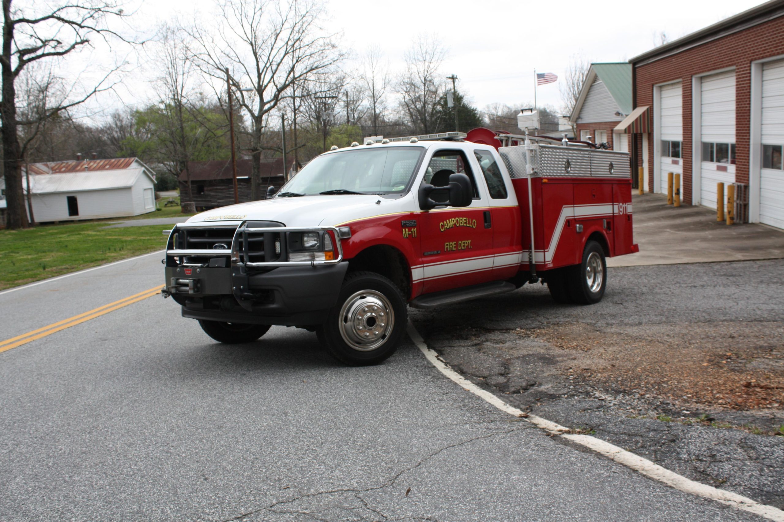 Station 2 is located at 214 Walnut Hill Rd Campobello SC. Station 2 houses a 2010 Pierce Contender Pumper with a 1000 Gallon Tank and a 1000 gpm Pump. and a 1998 AM General All wheel drive Brush Truck with a 500 Gallon Tank and a 300 gpm Pump.